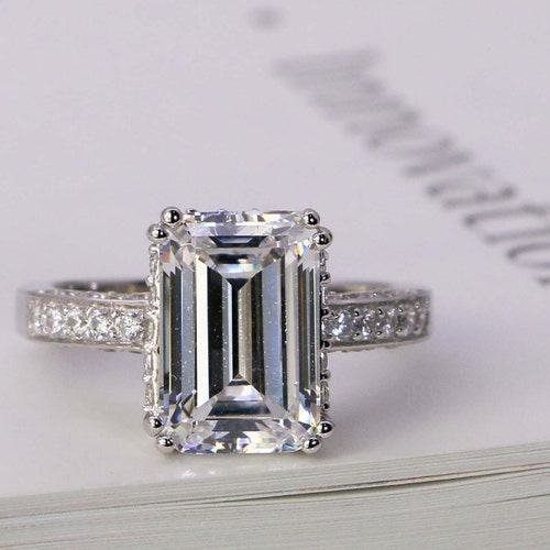 5 5ctw Emerald Cut Ring Engagement Ring Solitaire Ring Etsy